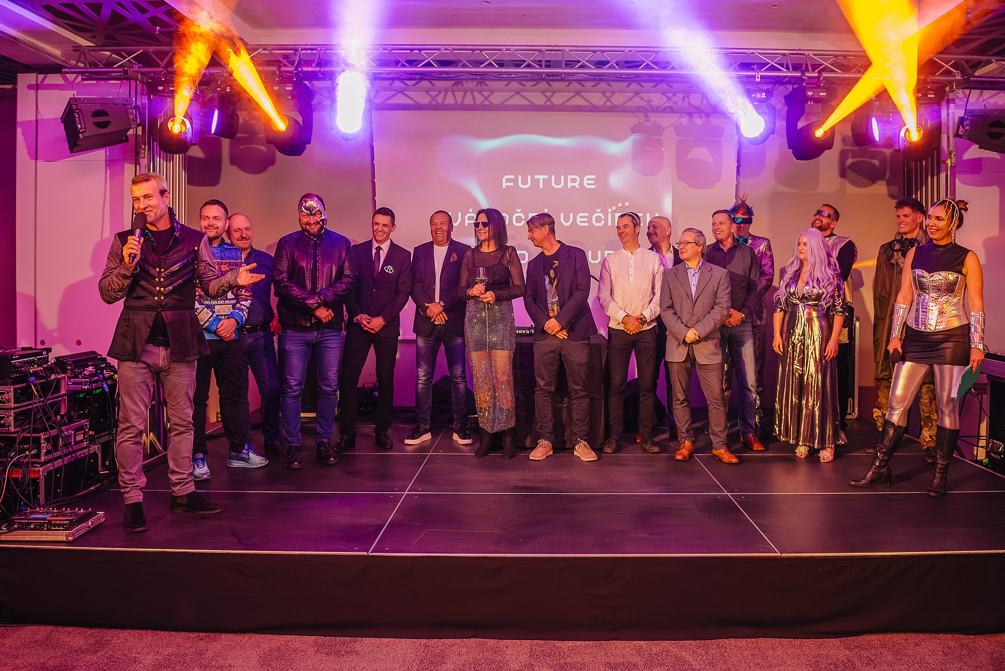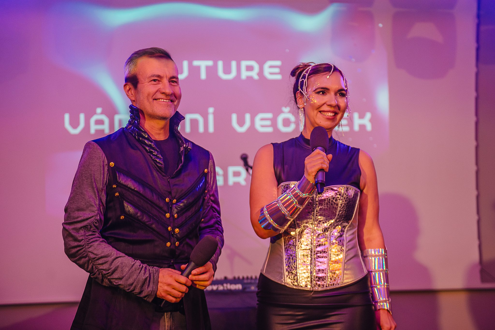 Na pódiu nás roztančil Matěj Ruppert s kapelou G Point Hunters, DJ udržoval náladu na vrcholu a na programu byl také 3D svět a body art, který dokonale doplňoval futuristickou atmosféru našeho večírku. Vše podtrhla výzdoba, která nás přenesla do jiného vesmíru. 🚀🌑